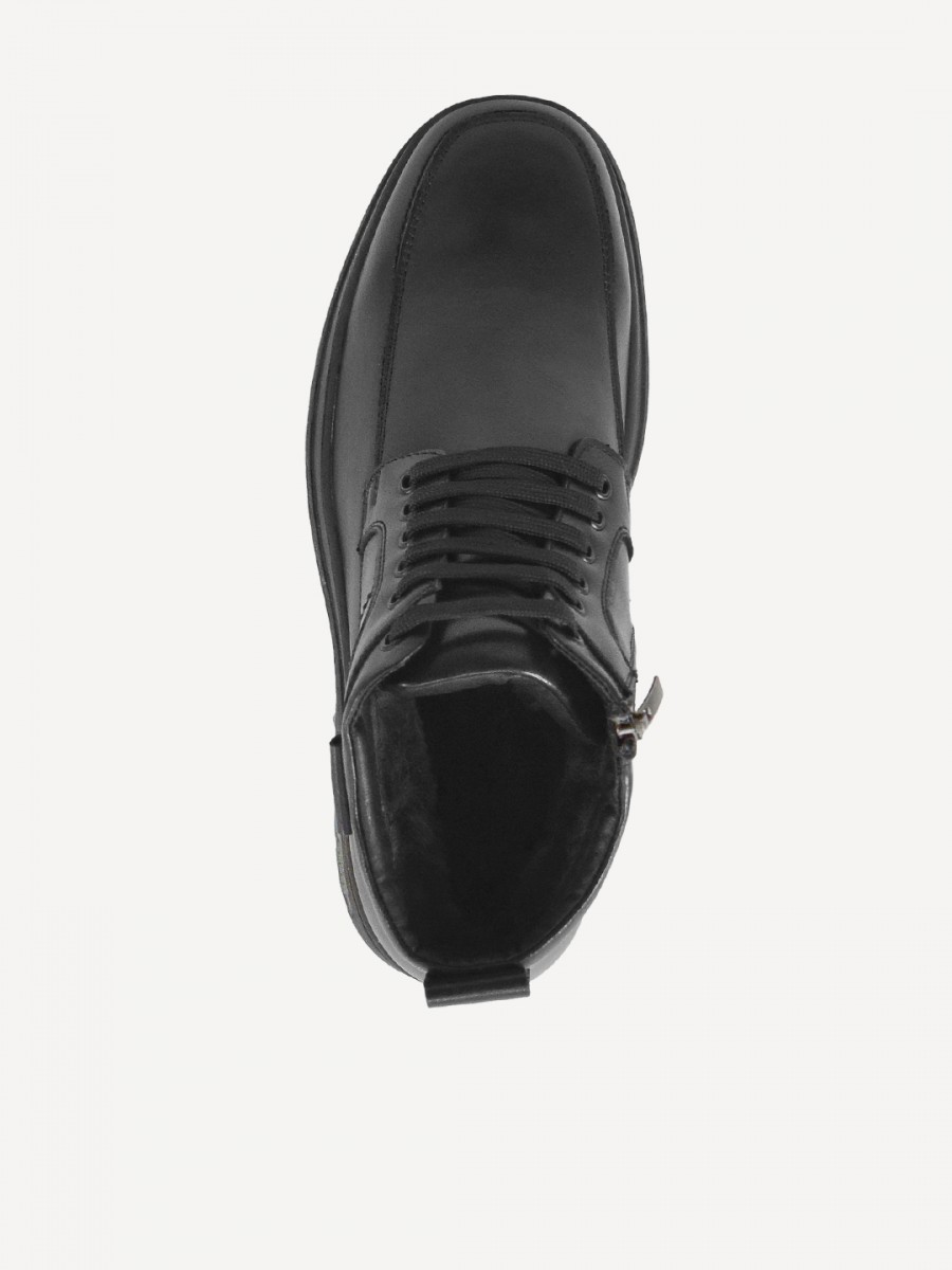 Верх ботинок выполнен из натуральной кожи, что обеспечивает долговечность и прочность изделия. Подкладка из натурального меха гарантирует сохранение тепла и комфорт при носке.