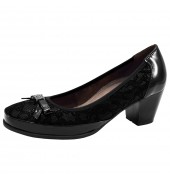 Стильные и удобные женские туфли отлично подойдут для повседневной носки, а также в качестве обуви для торжественных мероприятий или в качестве обуви для офиса. Верх выполнен из комбинации двух видов натуральных кож: велюра и наплака в цвете "синяя ночь" и гладкой кожи и наплака в черном цвете. В подкладке - натуральная кожа. Для подошвы используется кожеподобная резина. У модели средняя полнота и имеется умеренно высокий каблук.