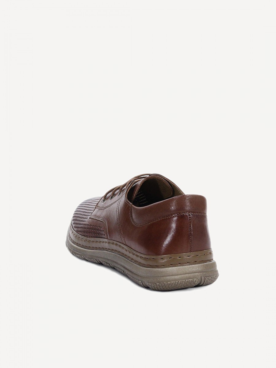 Особенностью данной модели является широкая полнота, что позволяет использовать полуботинки на широкую стопу. В качестве застежки используются шнурки.