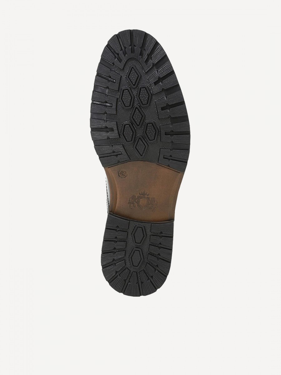 Верх полуботинок выполнен из гладкой натуральной кожи, что обеспечивает комфорт и долговечность изделия. Подкладка выполнена из натуральной кожи и текстильного материала, что гарантирует оптимальный микроклимат для ног.