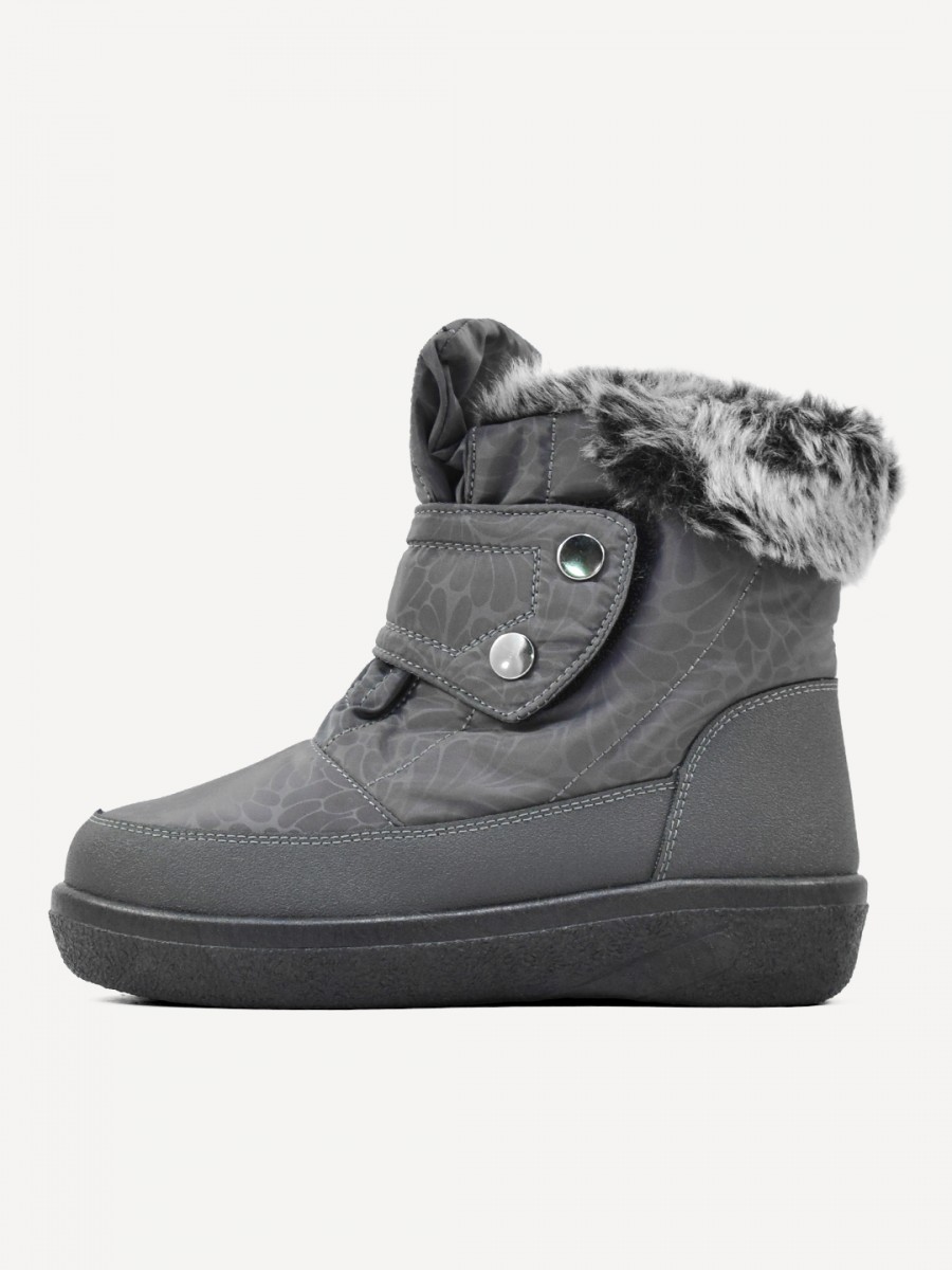 Верх дутиков выполнен из текстильного материала, что обеспечивает комфорт и удобство при носке. В качестве подкладки используется искусственный мех, который сохраняет тепло и обеспечивает уют в холодную погоду. Застежка на кнопки позволяет быстро и легко надевать и снимать обувь.