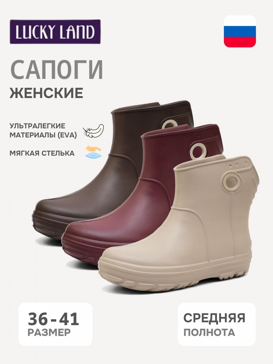 Современный лаконичный дизайн позволяет сочетать эту модель с любой повседневной одеждой. Сапоги Lucky Land производятся в России, что гарантирует высокое качество и внимательный контроль на каждом этапе. Они станут вашим надежным спутником во время дождя, на даче и на прогулках в городе, сохраняя ваши ноги сухими и даря комфорт каждый день.