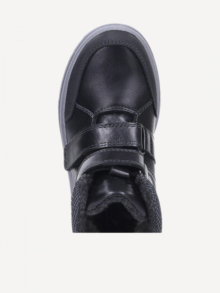 Верх ботинок выполнен из гладкой натуральной кожи, что обеспечивает комфорт и долговечность. Внутри ботинок находится шерстяной мех, который обеспечивает тепло и уют для ног вашего ребенка.