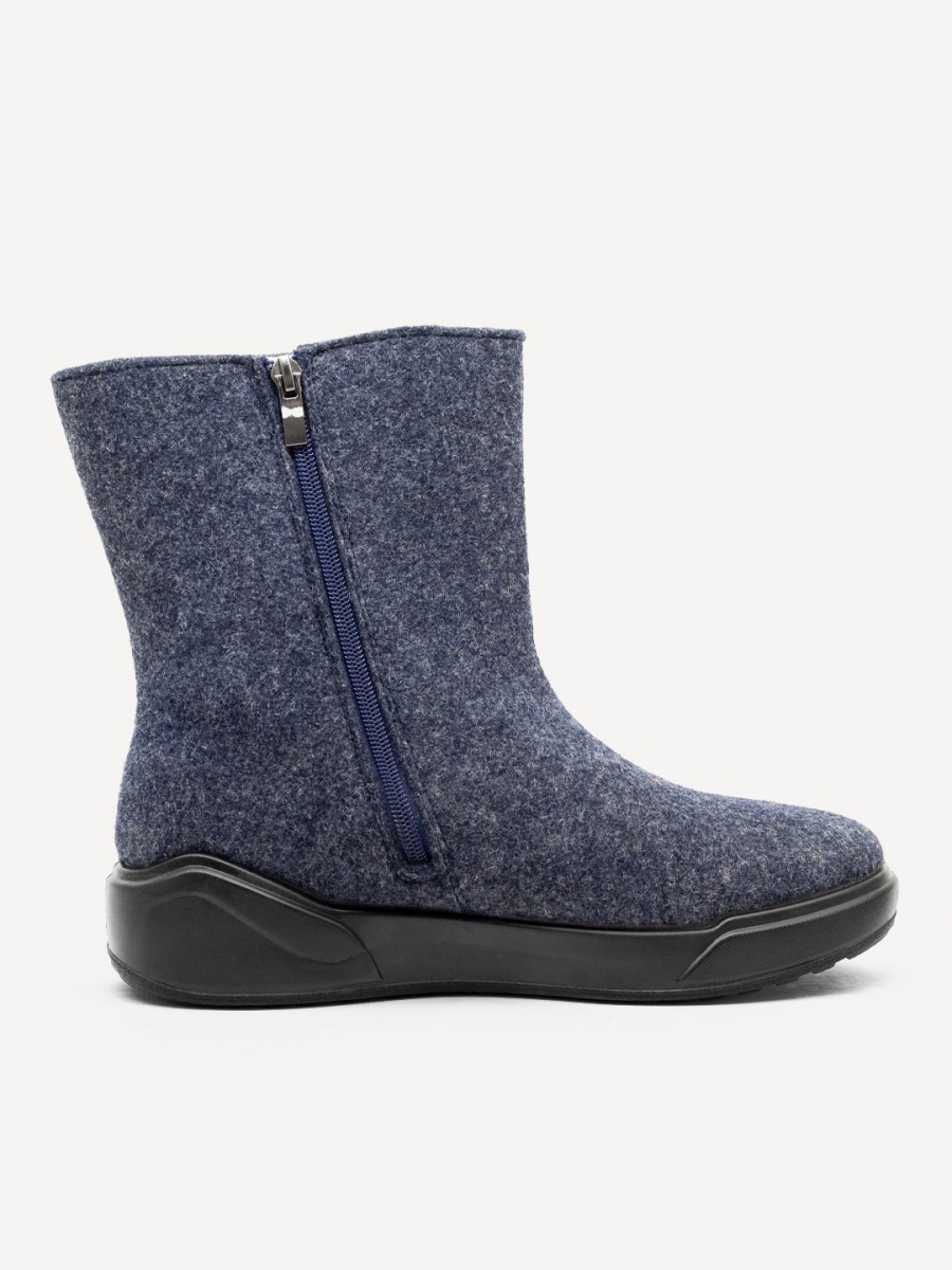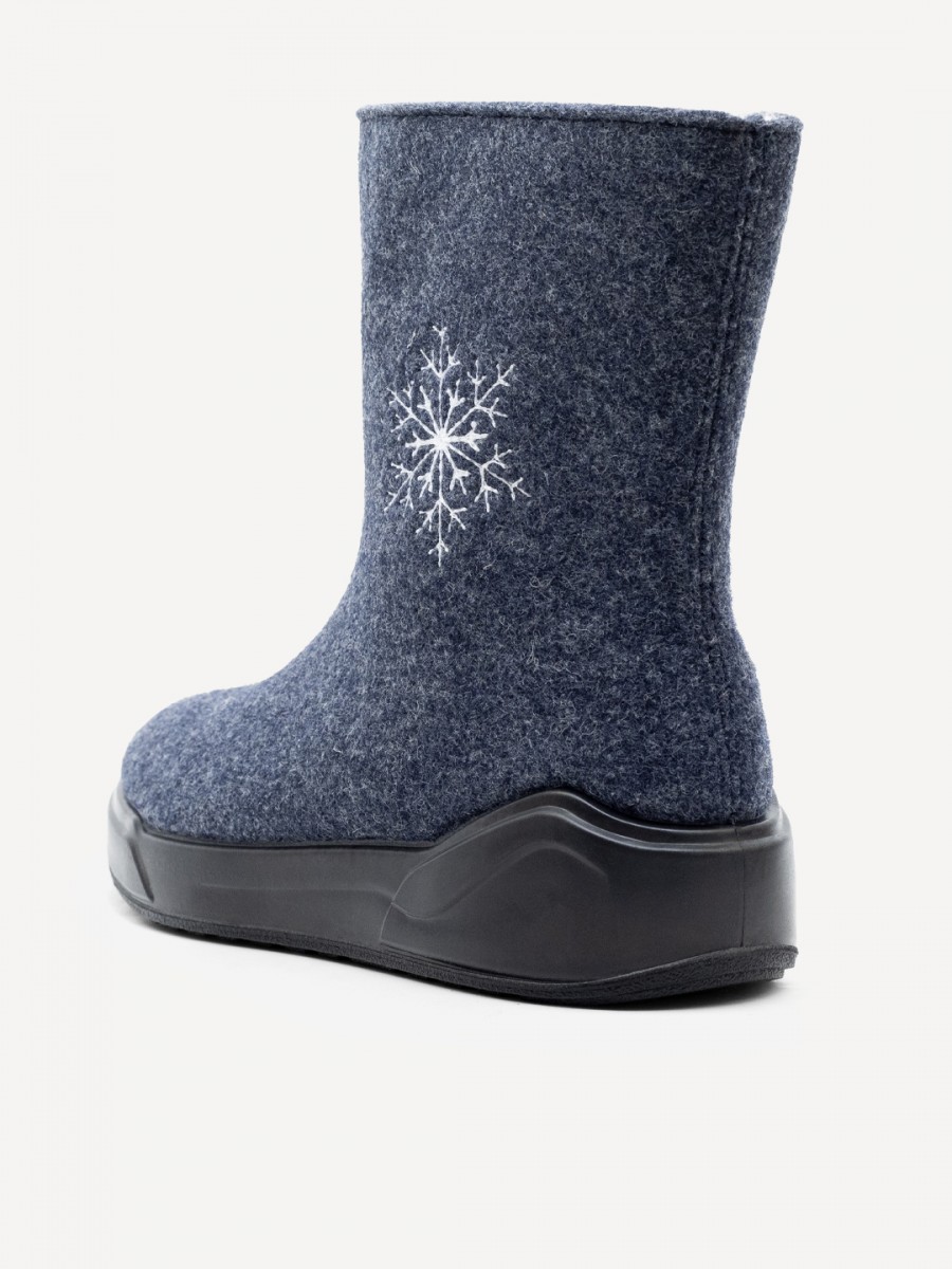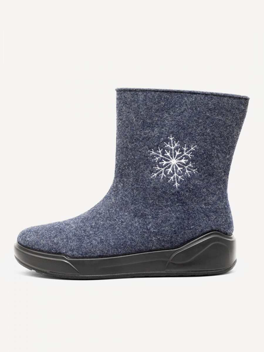 Верх полусапог выполнен из войлока, что гарантирует долговечность и сохранение тепла. Подкладка отсутствует, что делает обувь легкой и удобной для ношения. Ортопедическая стелька также изготовлена из войлока, обеспечивая дополнительную теплоизоляцию и комфорт при ходьбе.