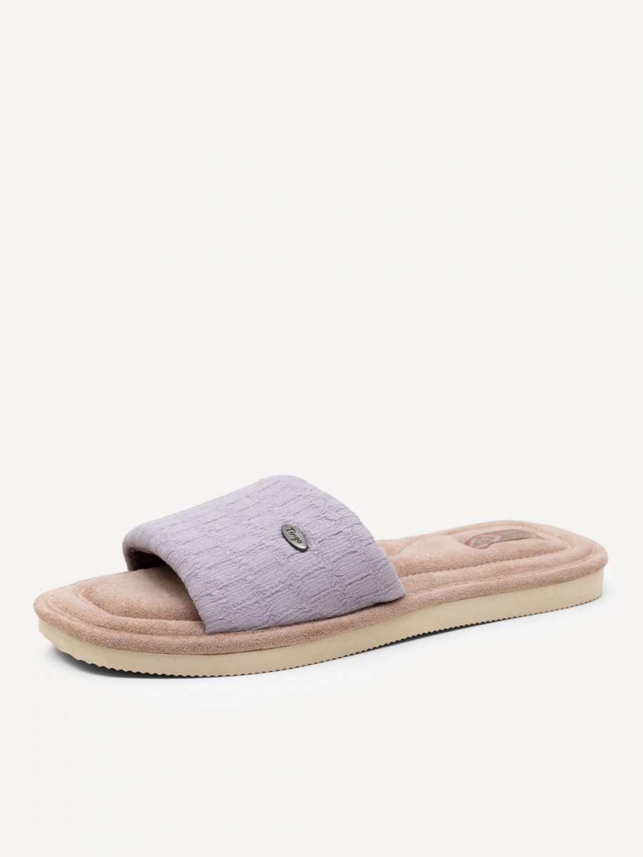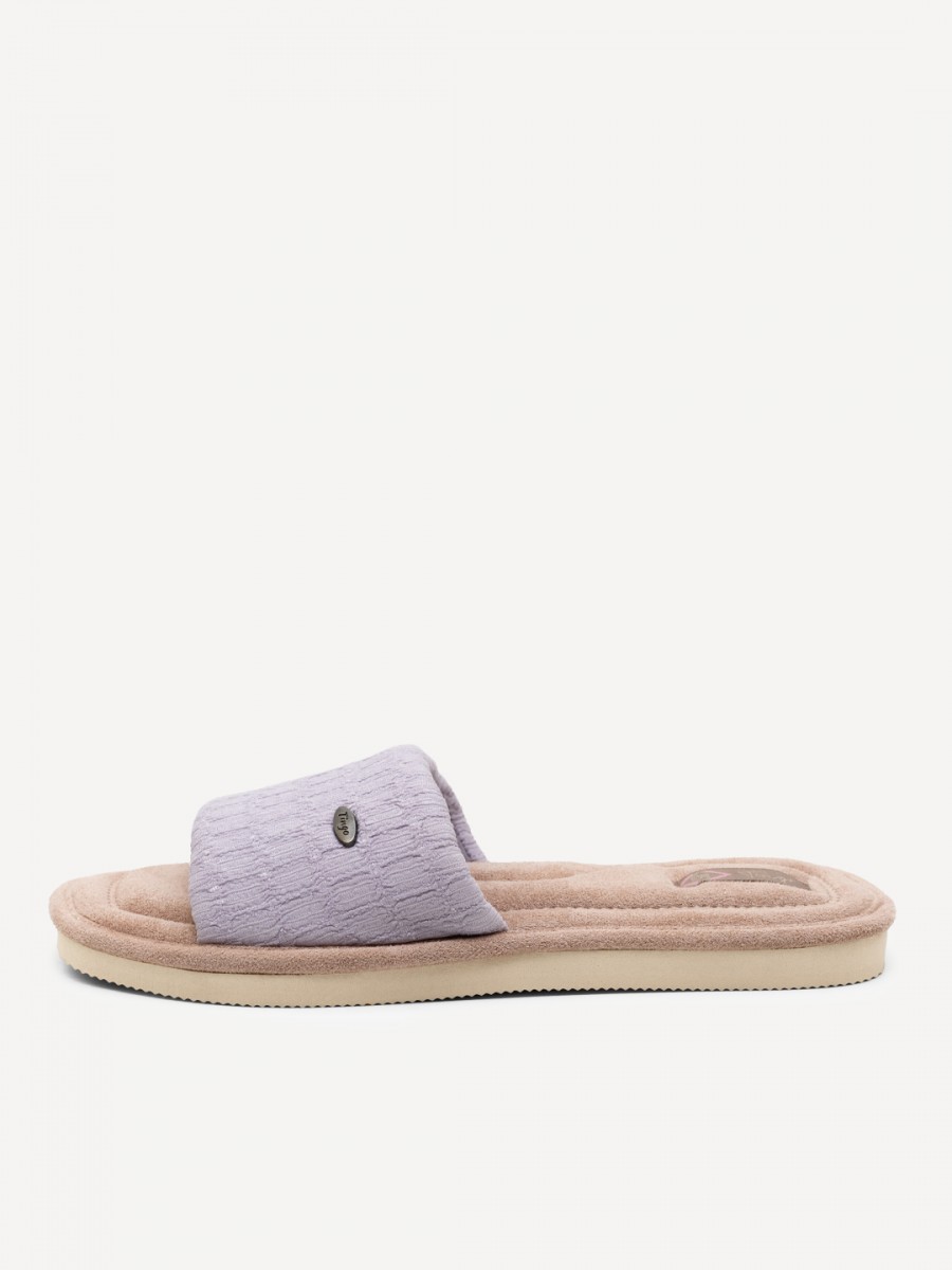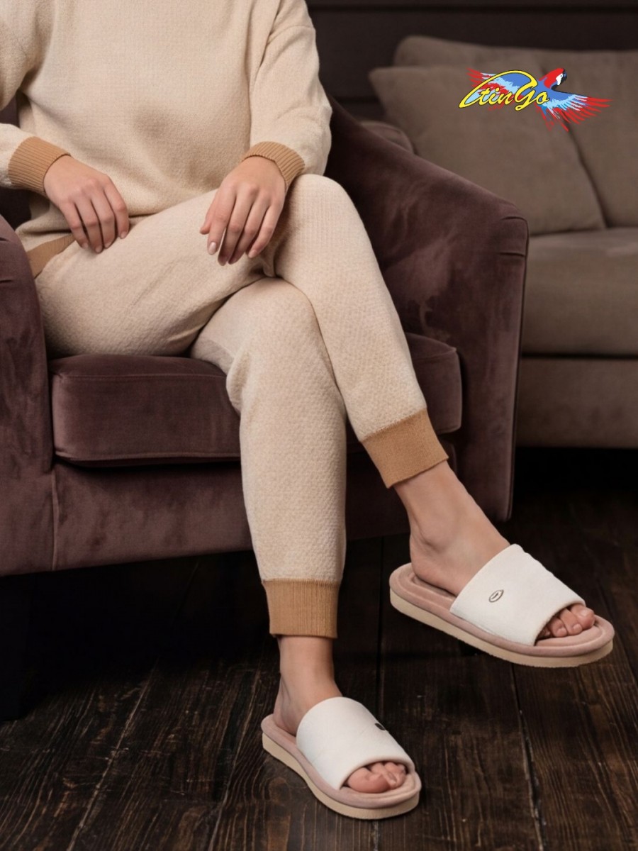 Подошва изготовлена из ПВХ, что обеспечивает долговечность и устойчивость к износу. Нескользящая подошва гарантирует безопасность при ходьбе по дому.