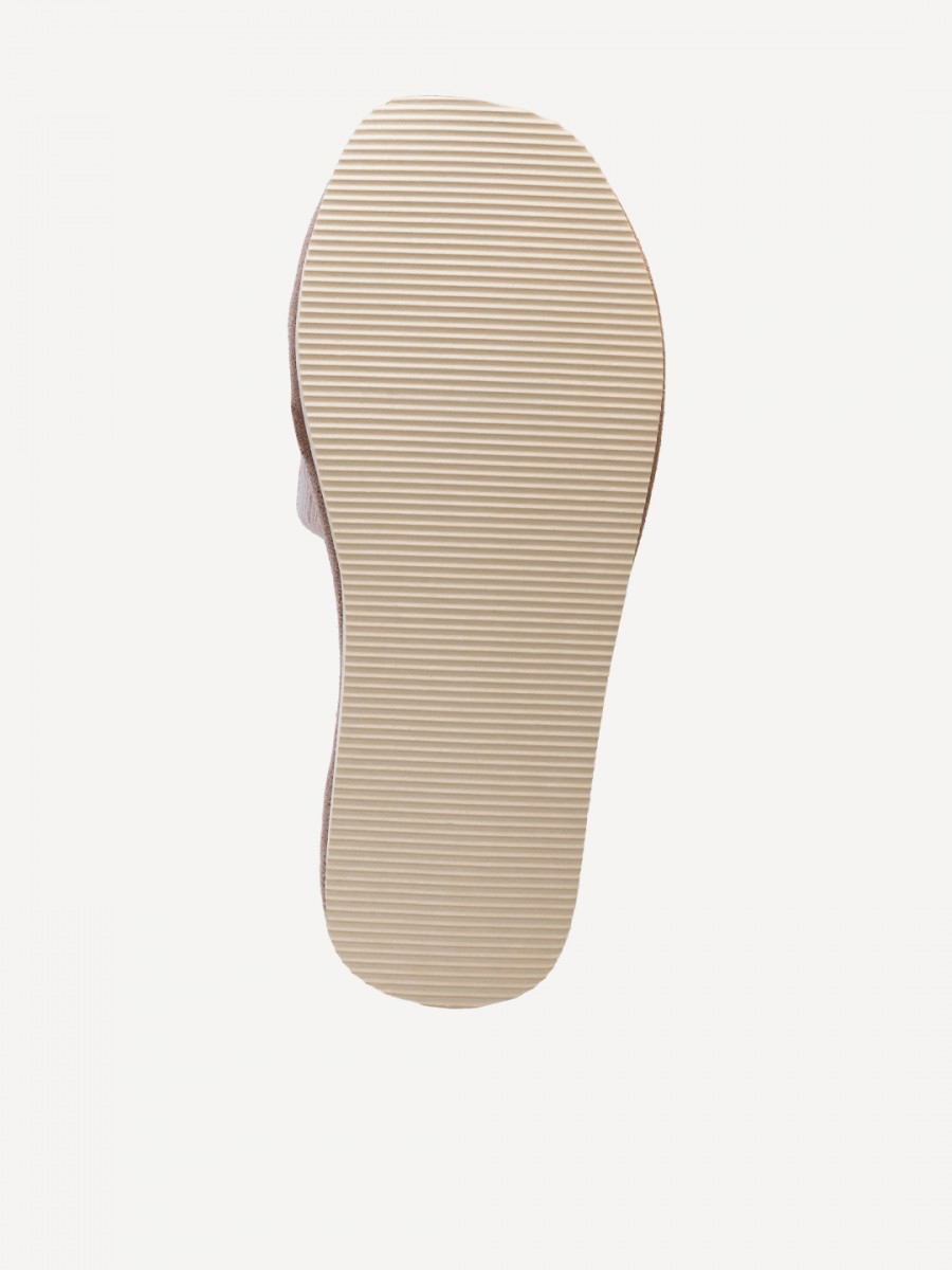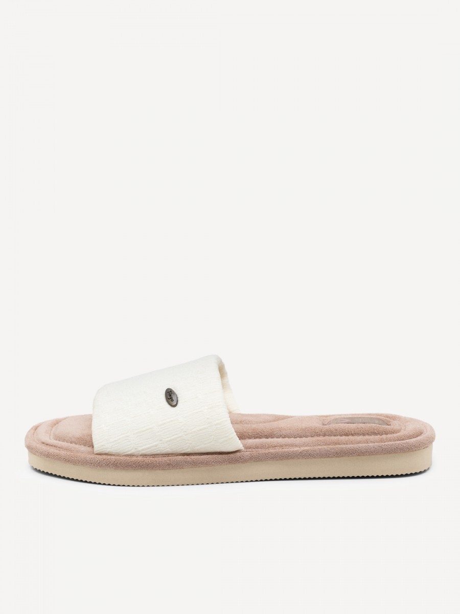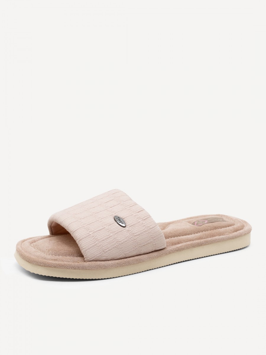 Подошва изготовлена из ПВХ, что обеспечивает долговечность и устойчивость к износу. Нескользящая подошва гарантирует безопасность при ходьбе по дому.