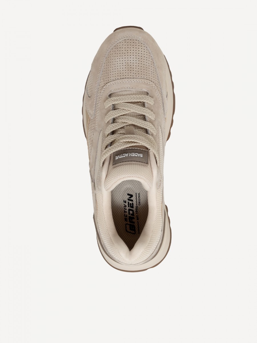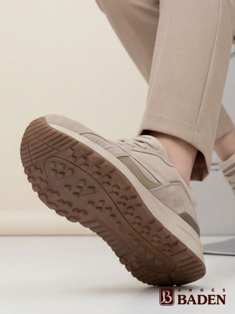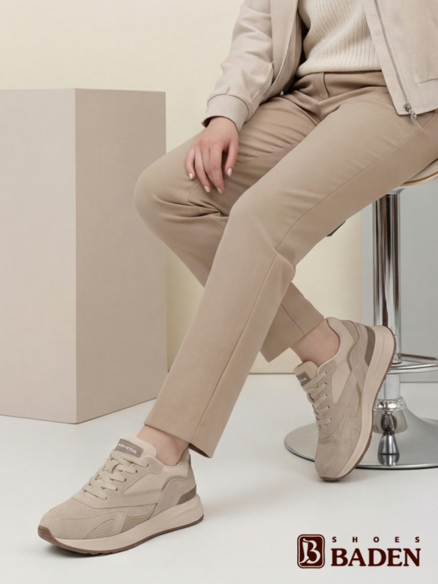 Кроссовки Baden JE530-014 представлены в бежевом цвете с вставками различных оттенков, что позволяет создать уникальный и стильный образ.