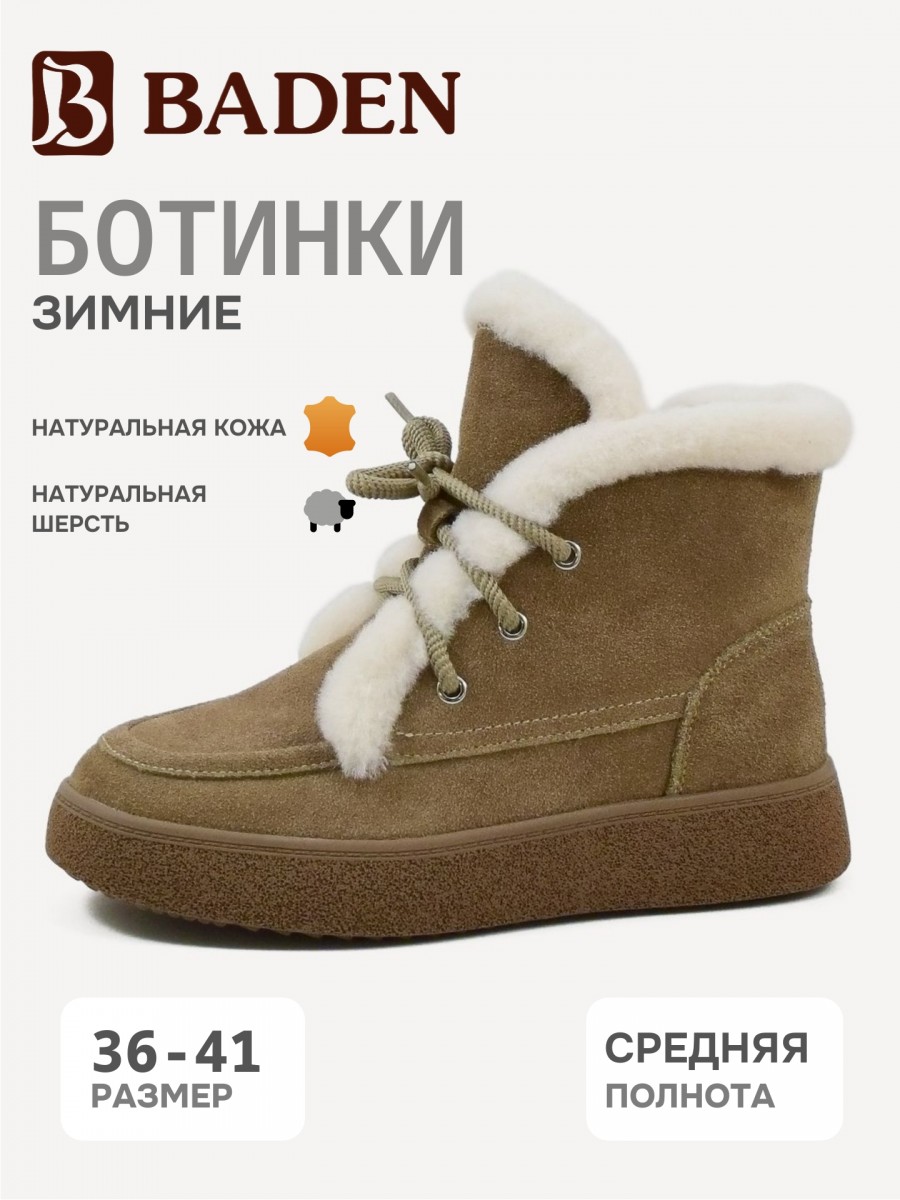 Женские ботинки RW163-011 Baden – это стильный и удобный выбор для зимнего периода. Верх ботинок выполнен из натуральной кожи (велюр), что обеспечивает комфорт и долговечность. Подкладка из натуральной шерсти сохраняет тепло и обеспечивает уют в холодную погоду.