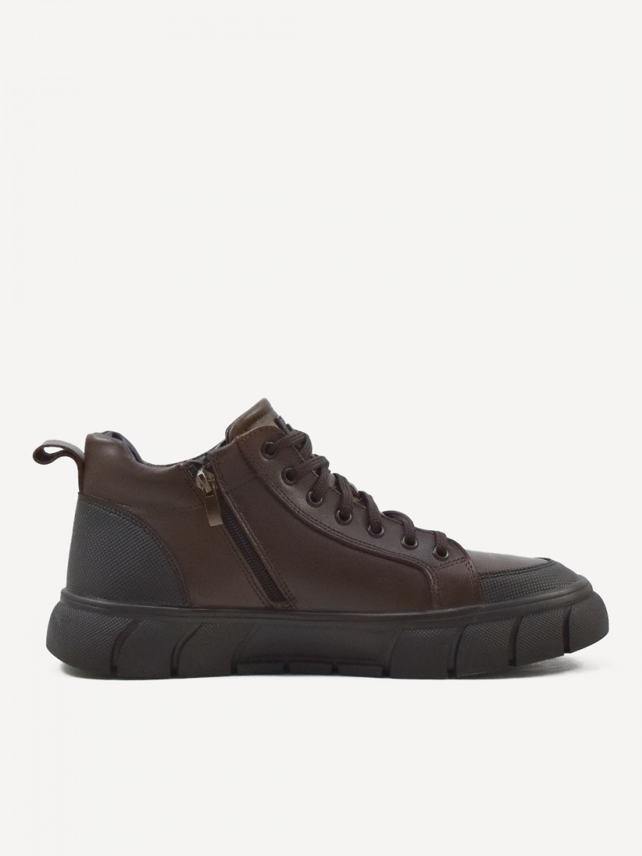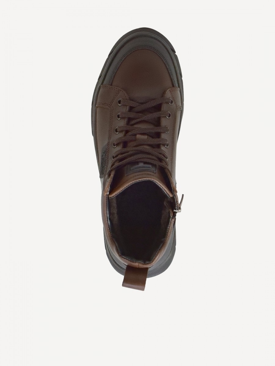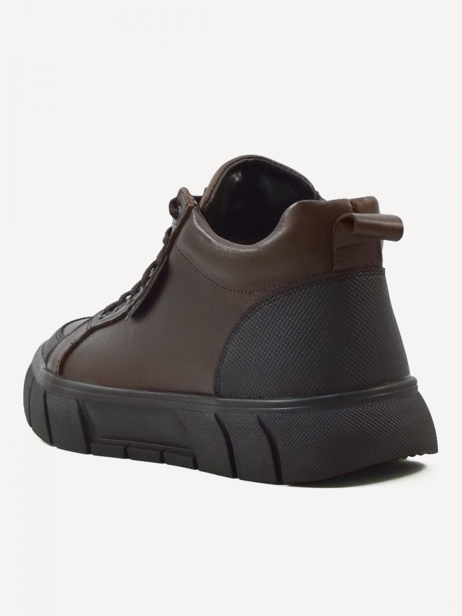 Верх кед выполнен из гладкой натуральной кожи, что обеспечивает долговечность и прочность изделия. Подкладка из натуральной шерсти сохраняет тепло и обеспечивает уют в холодную погоду.