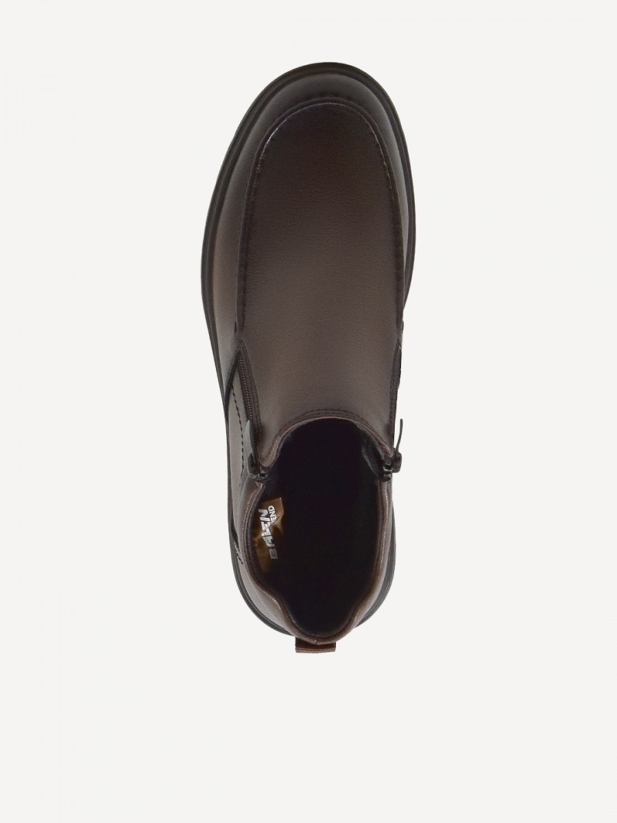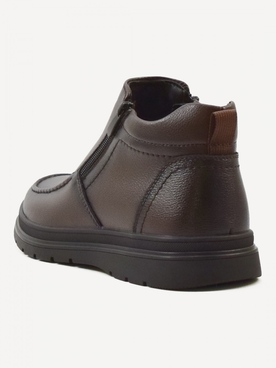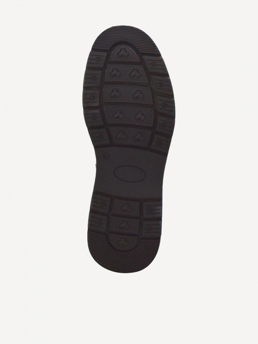 Верх ботинок выполнен из гладкой натуральной кожи, что обеспечивает долговечность и прочность изделия. Подкладка из натуральной шерсти сохраняет тепло и обеспечивает уют в холодную погоду.